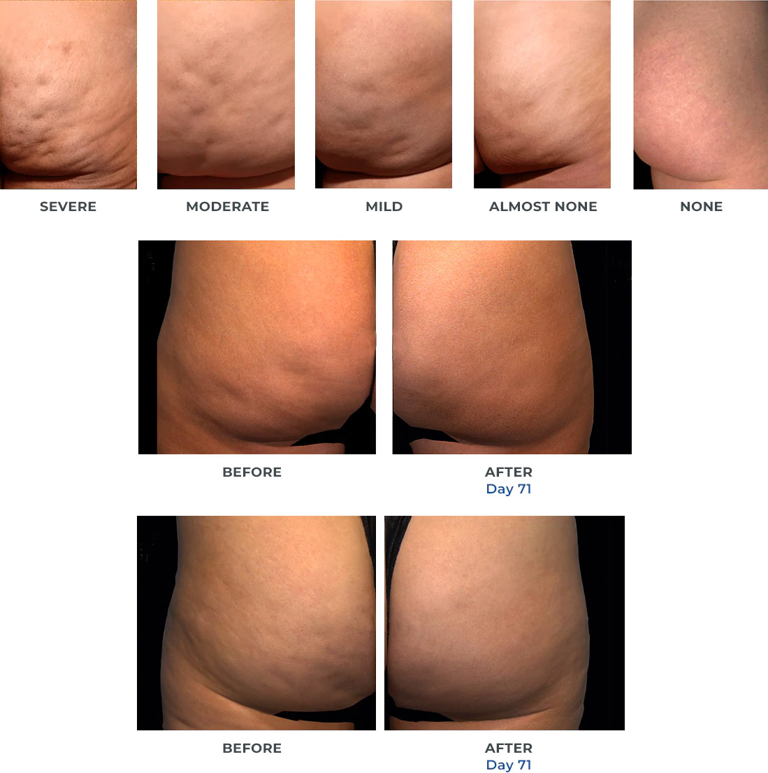 During treatment, QWO releases enzymes called collagenases. These enzymes break up those fibrous bands that hold your fat pockets together, relieving the surface’s dimpling and smoothing out your skin’s appearance. All while redistributing fat cells and promoting new collagen growth.